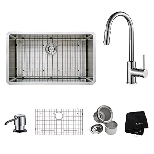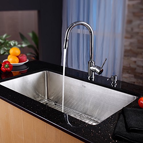 Kraus KHU100-32-KPF1622-KSD30CH 32 inch Undermount Single Bowl Stainless Steel Kitchen Sink with Chrome Kitchen Faucet and Soap Dispenser