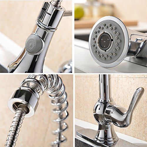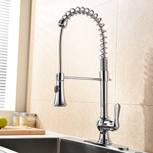 VAPSINT Commercial High Arch Stainless Steel Single Handle Pull Out Kitchen Faucet, Polished Chrome Kitchen Sink Faucets