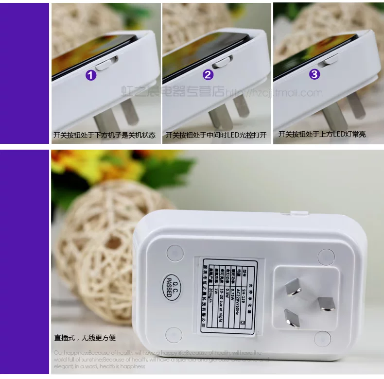 Sterilization deodorant, wide application, such as a bedroom, bathroom, kitchen, wardrobe and other needs deodorant and sterilization needs faint illumination at night anywhere.