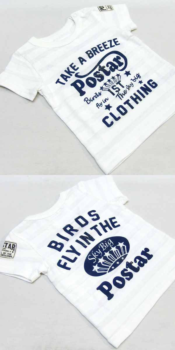 コメント:シンプルなロゴTシャツはどんなアイテムとも相性バツグン!!夏に涼しいシャドーボーダー生地です。◎※80,90,95cmは左肩スナップボタン付きです。