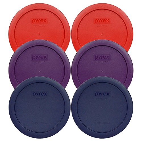 Pyrex 7201-PC Round 4 Cup Storage Container Lids for Glass Bowls (2-Poppy Red, 2-Purple, 2-Navy Blue)