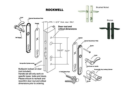 -. Feature : Keyed Entry Active Multipoint Handle set with 7.874" CTC Screwholes ; Solid Brass handle set / Europrofile cylinder with 2 keys SC1 keyway; 90 degree (1/4 turn) cylinder) / Handle set fits 1.75" thick door; Screwhole Center to Center 7.874" / Handleset is used for Patio doors with Multipoint locks that require keyed entry / Includes exterior and interior plates, levers, keyed cylinder, fasteners (mortise lock not included)