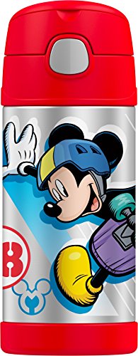 THERMOS products deliver what matters every time. As the leading manufacturer of convenient insulated products for over 100 years, THERMOS is trusted by consumers to provide innovative portable containers that promote a safe and healthy lifestyle. THERMOS delivers when it matters. THERMOS brand products offer superior cold retention that keeps beverages cool and delicious for hours, and the 12 ounce FUNtainer Straw Bottle is no exception. THERMOS vacuum insulation technology virtually eliminates temperature change within the beverage container by creating an airless space between two stainless steel walls. The result is an insulation layer that performs better than any other. A superior insulated container you can depend on to keep your child’s beverages colder, fresher, longer. This hydration bottle keeps beverages cold up to 12 hours – more than 10 times longer than an ordinary plastic water bottle. Constructed with double wall stainless steel, this 12 ounce straw bottle is virtually unbreakable and built to withstand the demands of everyday use. Featuring a hygienic, push-button lid, this straw bottle is easy to open and drink from. Also included on the lid is an integrated, flip-up carrying loop. The THERMOS FUNtainer Straw Bottle comes equipped with a breakaway lid designed to simply snap off if accidentally dropped while the lid is open. The lid can then be easily snapped back into place, making this a great, worry-free choice for parents and kids alike. In order to maximize the incredible insulation technology, it is recommended to pre-chill the bottle just prior to use. This can be accomplished by filling the bottle with cold tap water, attaching the lid and letting it rest for a few minutes. Before you are ready to use, simply empty the water and fill with your favorite beverage. Attaching the lid will further increase the thermal efficiency. The FUNtainer Straw Bottle is made of BPA-free materials and is backed by a five-year limited warranty.Feature