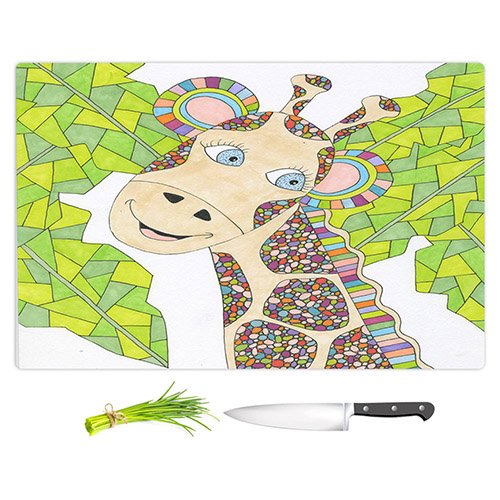DiaNoche Designs CB-ValerieLorTheKindGiraffe2 Valerie Lorimer-the Kind Giraffe Unique Kitchen Slicing Dicing Bar Artistic Decorative Cutting Boards from, Large 15" x 11"