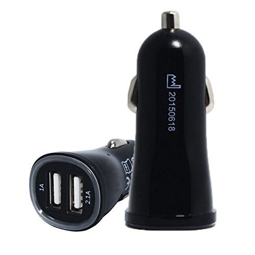 -. Feature : Input: DC 12-24V, dual USB ports output: DC 1A/2.1A / Accurate limited current output, protection against over-heat, over-current and over-charging, patented circuit board to protect your valuable gadgets / Dual port USB car charger charges your iPad, iPhone, iPod, HTC, Blackberry, MP3 players, digital cameras, PDAs, mobile phones / Internal temperature protection, fireproof material, compliant with CE, FCC standards / Light, smart and convenient to use