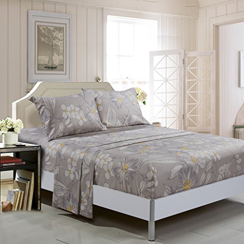 Creative Floral 4-Piece Luxurious Cotton Printed Sheet Set, Queen, Taupe
