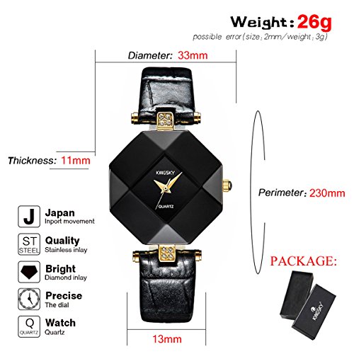 KINGSKY Fashion Beautiful Chromatic Square Glass Small Design Japan Quartz Watches for Ladies A1268 (Black)