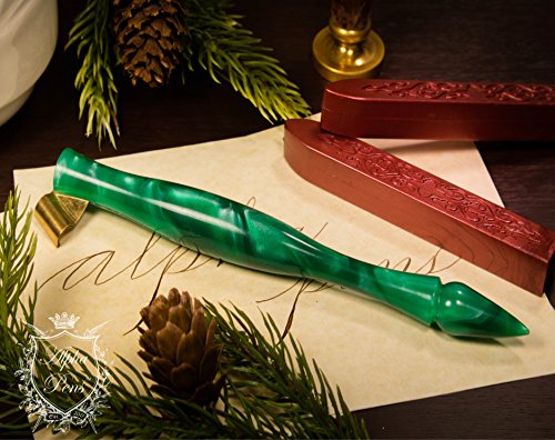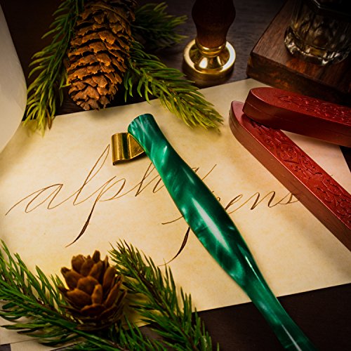 Elegant Resin Calligraphy Oblique Nib Pen Holder with multi-fit brass flange, and extra comfortable grip Right Handed Dip Pen by Alpha Pens (Marble Green)