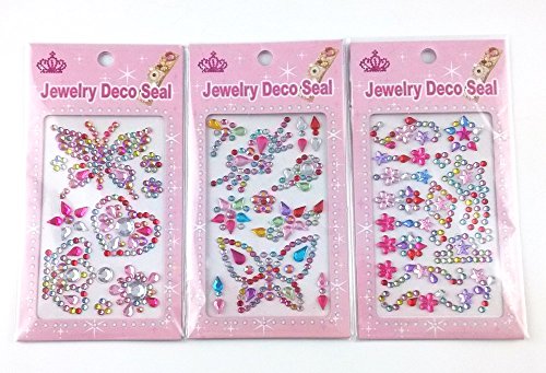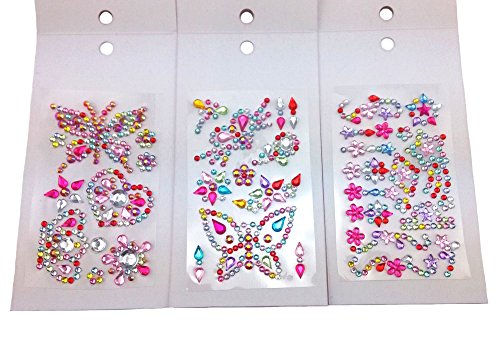 yueton 12 Sheets 3 Different Pattern Colorful Assorted Size Self Adhesive Bling Rhinestone Craft Jewels Gem Diamond Sticker Embellishments