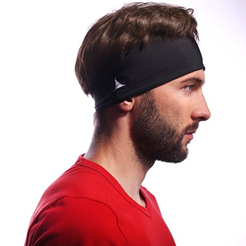 Sporty Touch 4” Wide Men Headband / Sweatband Best for Sports, Running, Workout, Yoga + Elastic Hair Band - Ultimate Athletic Performance