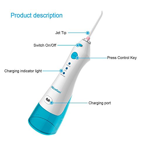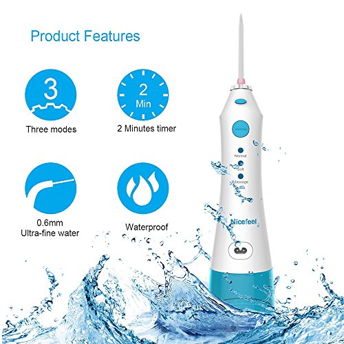 Pwhite Dental Water Flosser Nicefeel Professional Rechargeable Portable Cordless with High Capacity Water Tank for Oral Irrigator Teeth Cleaning