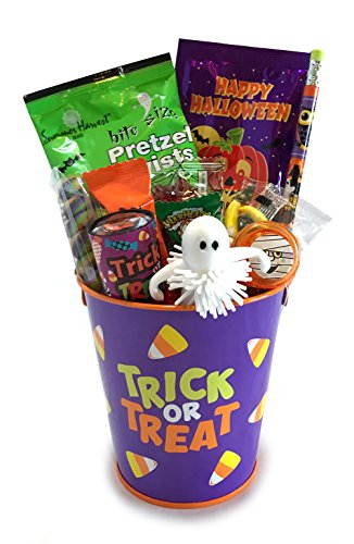 -. Feature : This gift set for Halloween comes with a reusable container - and lots of Halloween candy and various Halloween toys / This candy gift basket will be a perfect gift for goblins of all ages. / This Halloween gift set comes with Halloween treats, including candy and snacks / This gift for your child, friend, loved one, etc. comes with lots of Halloween toys (for children of all ages) to let your favorite ghoul know that your miss them! / Each set is ready for presentation and perfect for gift giving. Include a personalized gift message by selecting gift during checkout, allowing you to input your own personalized best wishes