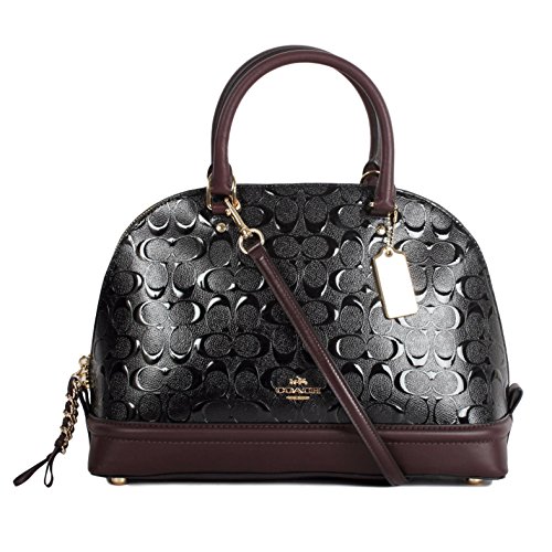 -. Title : Coach Signature Debossed Patent Sierra Dome Satchel F55449 Black Oxblood