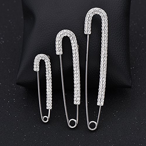 -. Feature : Material:Eco-friendly Alloy,CZ Crystal / Size(Length*MaxWidth): L(4.06"X0.79"); M(3.23"X0.71"); S(2.32"X0.59") / Package included: 3PCS Safety Pins / Great for wedding, party, prom, or daily wearing, bringing you bling / Gift box available for free
