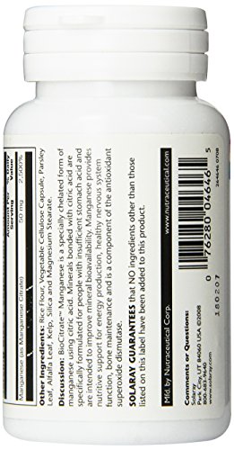 ReleaseDate : 2015-03-19 Studio : Solaray Publisher : Solaray Binding : Health and Beauty Product Description Manganese supports several processes and systems within the body. BioCitrate Manganese 50 mg from Solaray is easily absorbed for greater bioavailability of this vital mineral. 0