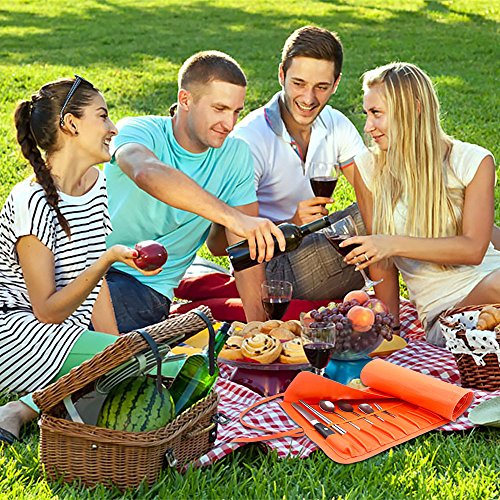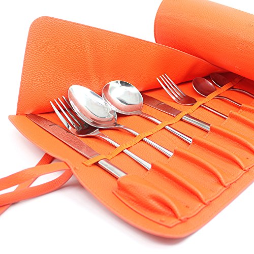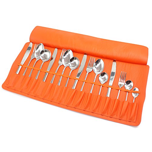 - EASY TO CARRY -- Our cutlery holder features a long strap to pack up your knives forks spoons tightly. Roll it up and cinch down strap, and you’re on your way! A carry bag is optional to store the knife roll bag.
