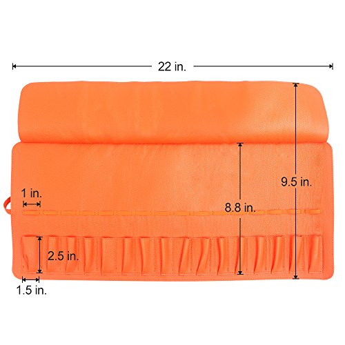- DIVERSE STORAGE -- Knife carrier holds up to 16 knives and tools, such as knives, all kinds of forks, tasting spoons, other small chef utensils or tools. Size of each pocket: 8.8" * 1.5"(height * width).