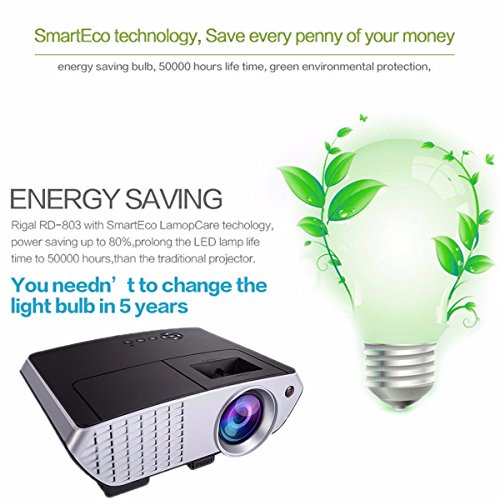 Energy Saving: ELEGIANT RD-803 with Smart Eco Lamop Care techology, power saving up to 80%,prolong the LED lamp life time to 50000 hours,than the traditional projector. You needn't to change the light bulb in 5 years.