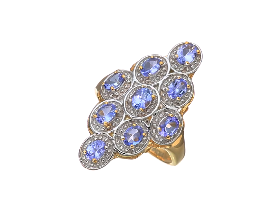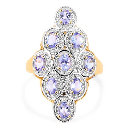 14k Yellow Gold Plated Genuine Tanzanite .925 Sterling Silver Ring, Size 7