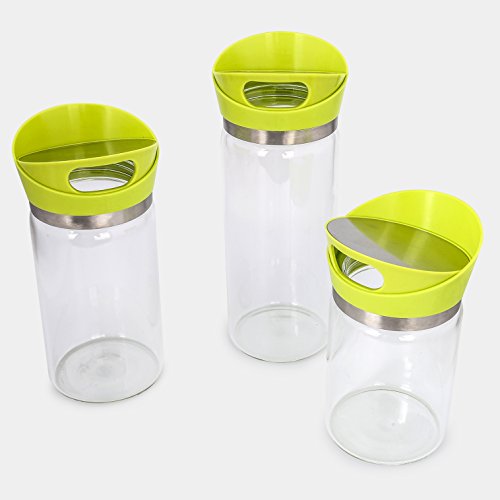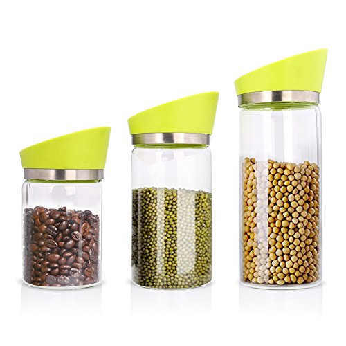 June Sky Food Storage Containers Glass,3 Different Size Cookie/Candy/Spice/Tea/Nuts/Cereal Jar- with Rotatable Lid