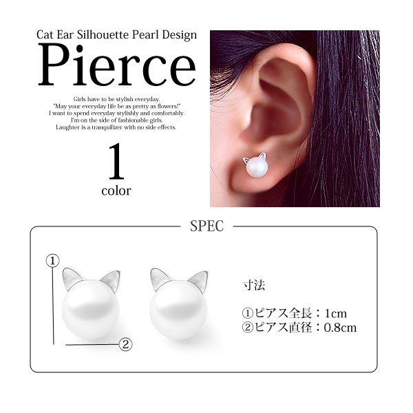 <<スーパーSUMMER SALE>>★ネコ耳シルエットパールデザインピアス★シンプルなネコ耳デザインです。よく見るとネコのデザインでさりげなくカワイイ!!ネコ好きには、嬉しいアクセサリーです。■商品詳細■(画像9枚目参照)ピアス全長:約1cmピアス直径:約0.8cm※注意事項※商品画像はできる限り実物の色に近づけておりますが、モニター・パソコン等の画像解像度により実際の商品と多少色味が異なる場合がございます。サイズは平置きサイズとなりますので、測り方により誤差が出る場合がございます。予めご了承くださいますようお願いいたします。