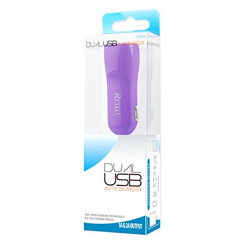 Reiko 2A5V Dual USB Charger with Reiko Logo - Retail Packaging - Purple