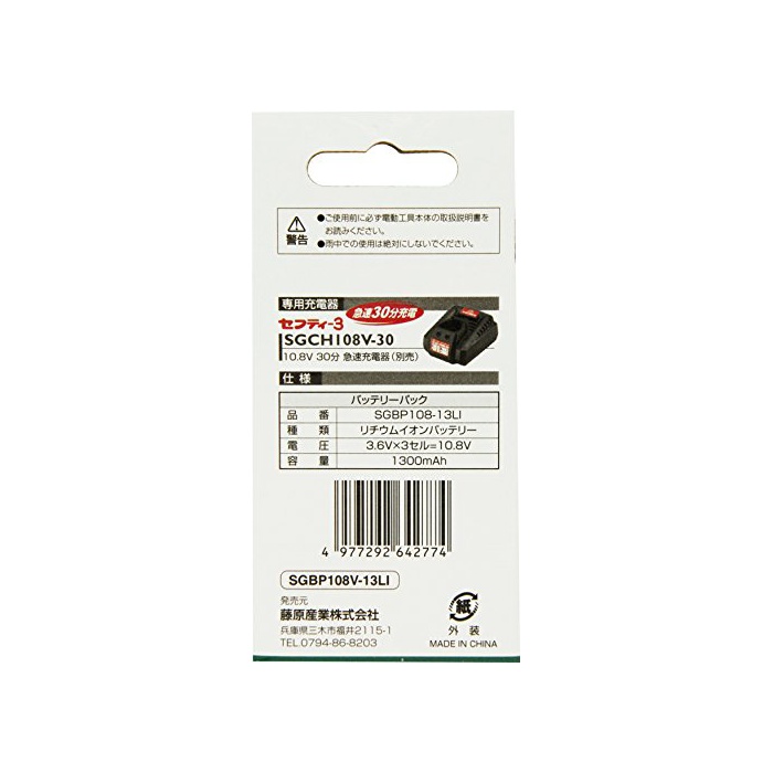 safety《―》3 safety―3 10.8V 리튬 이온 배터리 팩 공통 배터리 SGBP108-13LI