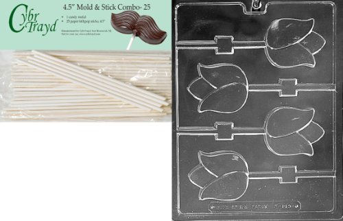 Cybrtrayd Tulip Lolly Flat Fruits and Vegetables Chocolate Candy Mold with 25 4.5-Inch Lollipop Sticks