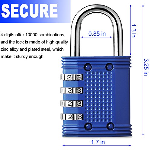 SECURE AND STURDY- 4 digits offer 10000 combinations, and the padlock is made of high quality zinc alloy and plated steel, which make it sturdy enough.