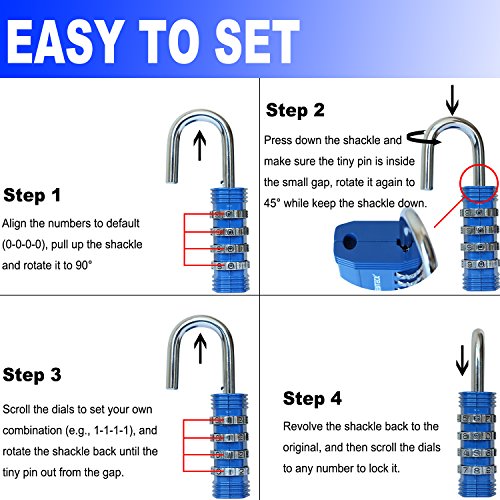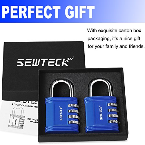 SEWTL Combination Lock Gym Combo locker lock 4 Digit Padlock for School and Sports Toolbox Case Hasp Storage(Blue) 2 Pack