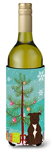 Caroline's Treasures BB4173LITERK Merry Christmas Tree Staffordshire Bull Terrier Chocolate Wine Bottle Beverage Insulator Hugger, 750ml, Multicolor
