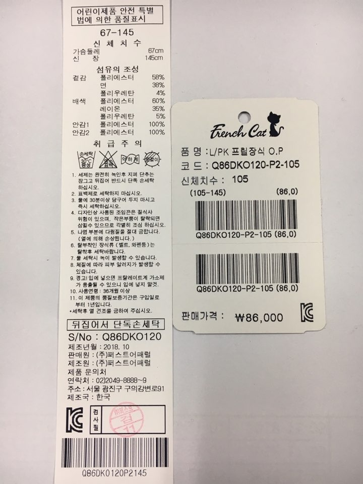 제조자 : 퍼스트어패럴