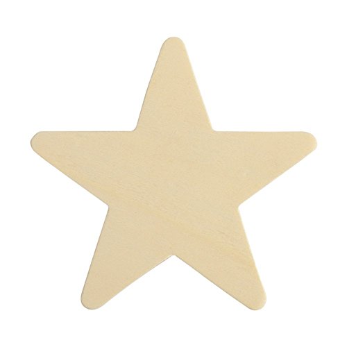 - Large unfinished wood star cutout shape measures: 4" tall x 4" wide x approx 1/8" thick