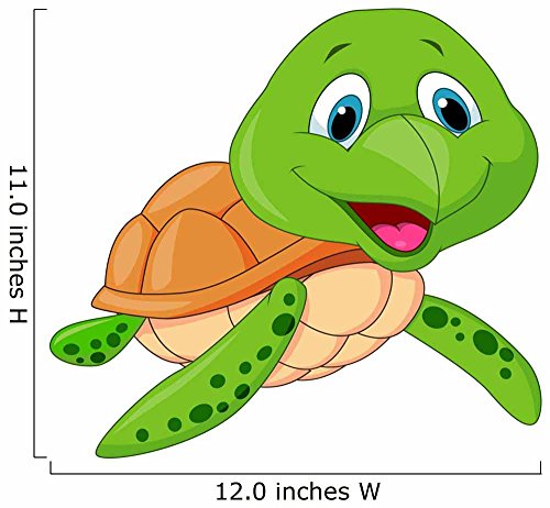 Cute Sea Turtle Cartoon Wall Decal by Wallmonkeys Peel and Stick Graphic (12 in W x 11 in H) WM53272