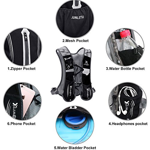 -. Feature : Reflective Stripe Design: Reflective material which is quite luminous at any light ray at night ensures safe running or cycling at night. / Comfortable and Ultralight: Running hydration pack weighs only 6.5 ounces, Wide breathable shoulder straps and mesh padded back add extra comfort. / Multi Functional Pockets: 9 pockets in total, you can store items like cell phone, keys, thin raincoat, 255ml water bottle, water hydration pack and other items for outdoor activities., hydration pack bladder and other items for outdoor activities. / BPA Free Water Bladder: Food-grade premium quality anti-bacteria materials, it can withstand temperatures from -20 to 50 degrees celsius, big screw opening makes it easier to access the interior and add ice cubes. / Package Contents: 2L Hydration Pack Backpack, 1.5L Water Bladder, Welcome guide, 18-month worry-free warranty and friendly customer service.