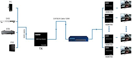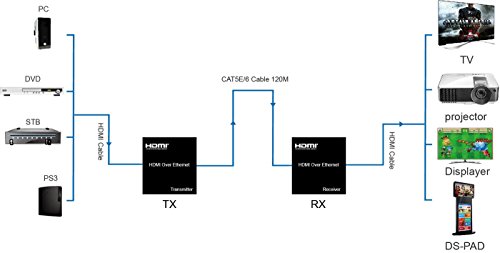 E-SDS HDMI Extender over Ethernet Single Cat5e Cat6 Cable Up to 395ft(120m) with IR, Support 1080p ,HDMI 1.3, HDCP 1.2/ 1.1, TCP/IP Standard - (Transmitter and Receiver Set) CV0109