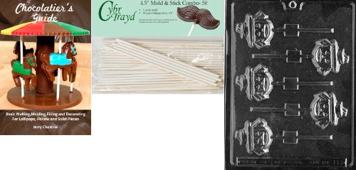 Cybrtrayd 'Face Scarecrow Lolly' Halloween Chocolate Candy Mold with 50 4.5-Inch Lollipop Sticks and Chocolatier's Guide