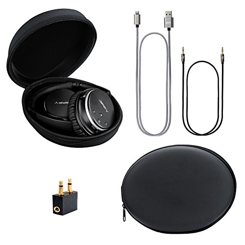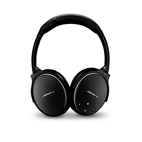 JIFFY Active Noise Cancelling Wireless Bluetooth Over-ear Stereo Headphones with Mic for all 3.5mm & Bluetooth device - Black