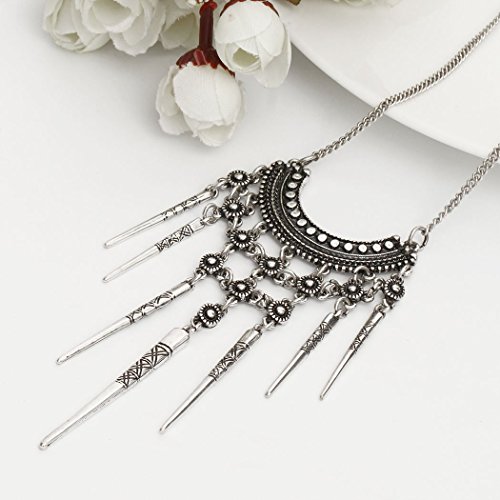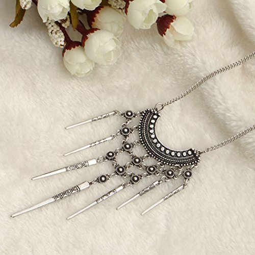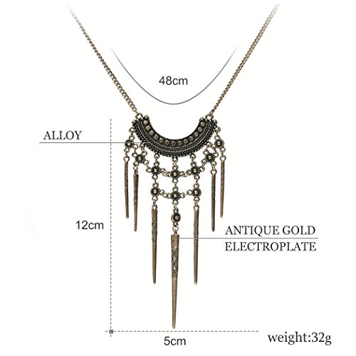 -. Title : HUIMEI Ethnic Tribal Boho Flower Fringe Long Geometric Pendant Necklace