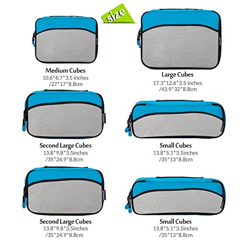 6 TRAVEL PACKING CUBES VALUE SET: 1 Extra Large Cube,2 Large Cubes,1 Medium Cube and 2 small Cubes of same color