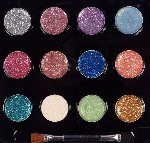 -. Feature : Glitter & Cream Eye Shadow in 12 Great Colors / Applicator Brush and Sponge Included