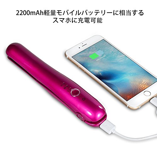モバイル充電器に変身機能&コードレスの充電式:充電式なのでモバイル充電器(2200mA)としてスマホに充電可能です。コードレスのデザインなので、外出先や旅行に便利です。充電時間約3~4時間、約30分間連続使用可能(フル充電時)。