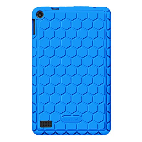 Fintie Silicone Case for Fire 7 2015 - [Honey Comb Series] Light Weight [Anti Slip] Shock Proof Protective Cover [Kids Friendly] for Amazon Fire 7 Tablet (Fire 7" Display 5th Generation), Blue