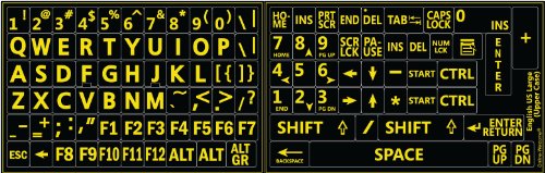 ENGLISH US LARGE LETTERS BLACK-YELLOW KEYBOARD STICKERS EXELLENT FOR LOW VISION CONTRAST COLORS