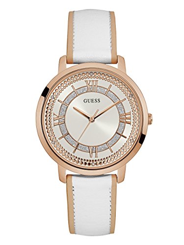 Define Your Time with this Crisp White Genuine Leather Watch with Rose Gold-Tone Accents and Hints of Crystals