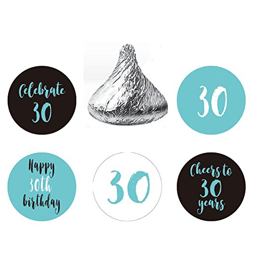Blue 30th Birthday Party Favors Stickers, Round Candy Labels Fit Hershey’s Kisses, 200 Count