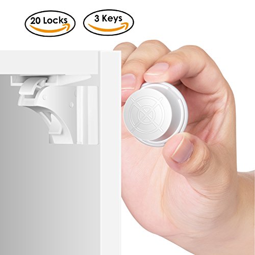 Product Description Smart Magnetic Safety Locks Set Our Safety Locks with powerful magnetic key is suitable for almost all types of cabinets and drawer, and other furniture, for the purpose of preventing child from opening the drawers to reach medicines or sharp tools inside. Keep Your Furniture Locked Invisibly The magnetic lock can be installed inside by using 3M adhesive tape. No drilling, no screws needed. It is not expected to damage your cabinet or drawer, keeping it original and beautiful. Thoughtful Details Treatment We designed that one key can open other locks, and provide the key holder you can stick it on the wall out of reach of child, so as to avoid missing after use. 20 Locks 3 Keys for your variety usage for cabinets, drawers, doors or kitchen, etc. Please Note Please clean up and dry the place for installation. Follow the directions just make sure the alignment before fixing the lock to the cabinet door. Leave the 3M tape dry for 24 hours, the locks will be firmly in place for a year. The locks are off position when you purchase, just flip the switch back to make the locks active. You can attach the base for the magnetic key to the top corner of the refrigerator, making it very easy to grab the key and it won't get lost. Warranty We commit to provide high quality products and stands behind with ONE-YEAR WARRANTY. If you have any questions, please contact us without hesitation. Just enjoy a hassle free purchase. Package List 3 x Keys 20 x Locks 10 x 3M Adhesive Tapes (for backup use) 0