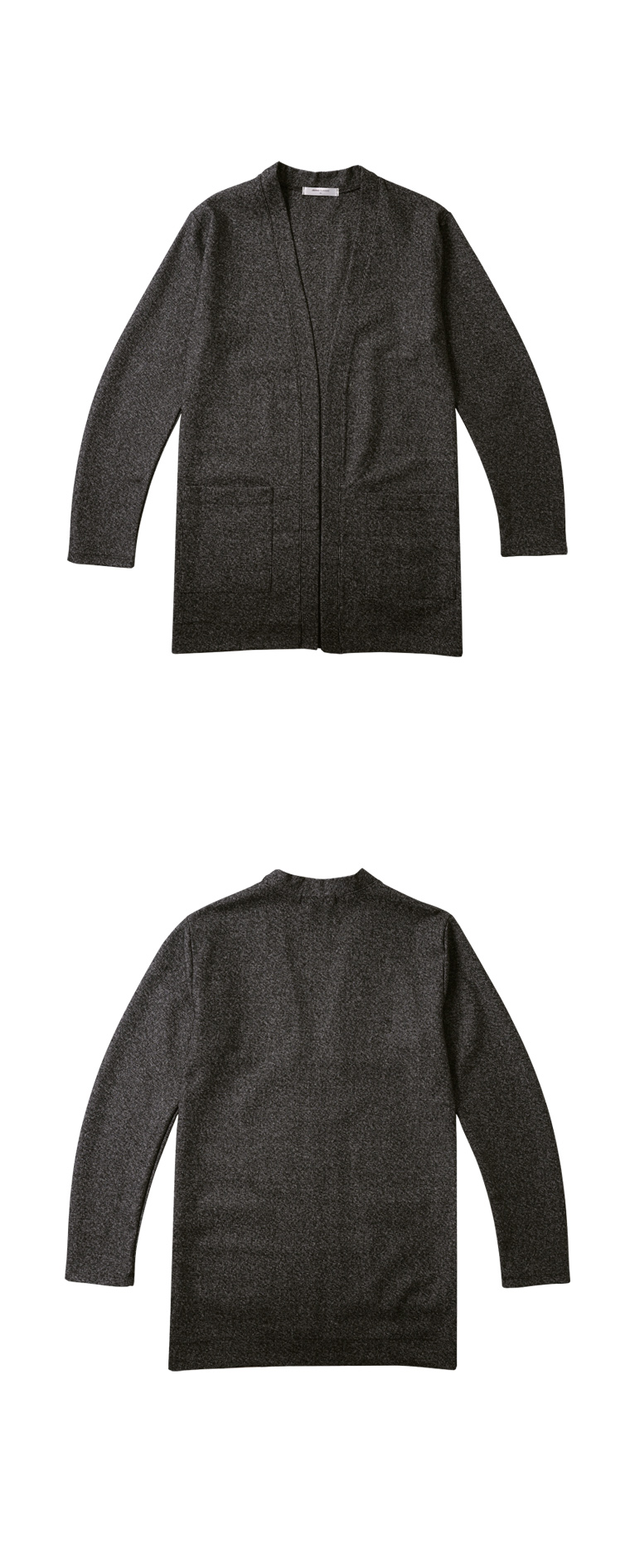 잘 떨어지는 조직감 좋은 울혼방원단을 이용해 제작된 롱가디건입니다. 오픈 타입으로 다양한 체형에 무리없이 착용하기 좋습니다. 밀도감 좋은 원단으로 울함량이 높아 터치가 부드러우면서도 구김없이 떨어지는 핏감이 매우 만족스러운 가디건입니다. 무릎위 기장의 롱가디건으로 편안하면서도 무게감 있는 코디가 가능합니다. 깔끔한 티셔츠나 셔츠와 슬랙스 코디하면 잘 어울립니다.