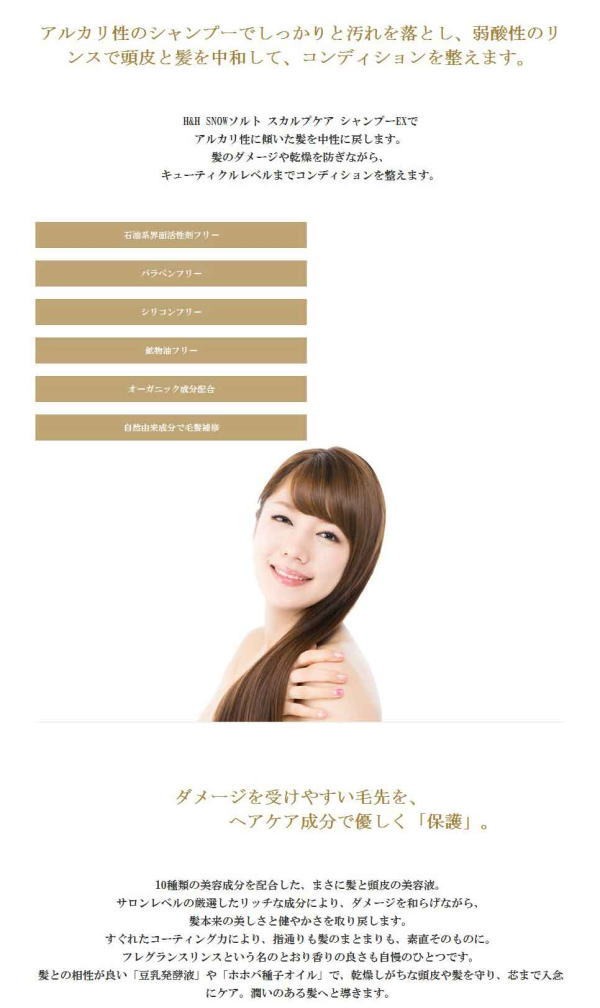 | 商品詳細 | 塩の力でアルカリ性に傾いた髪を 髪本来の中性に戻し、 髪をベストコンディションに促します。 |