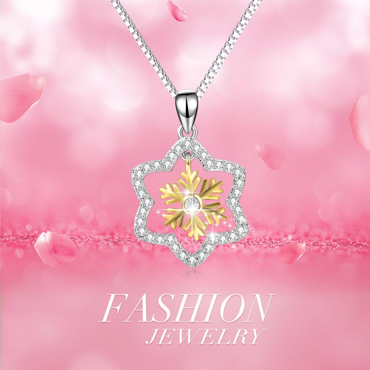 - このネックレスは地金のシルバーとK18イエローゴールドメッキで、星の形とも雪の華とも見えます。